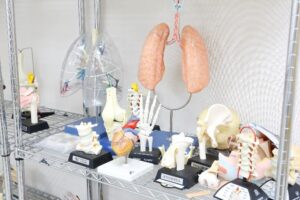 学生さんが実技の練習に使うベッドがズラリと並んでいます。
