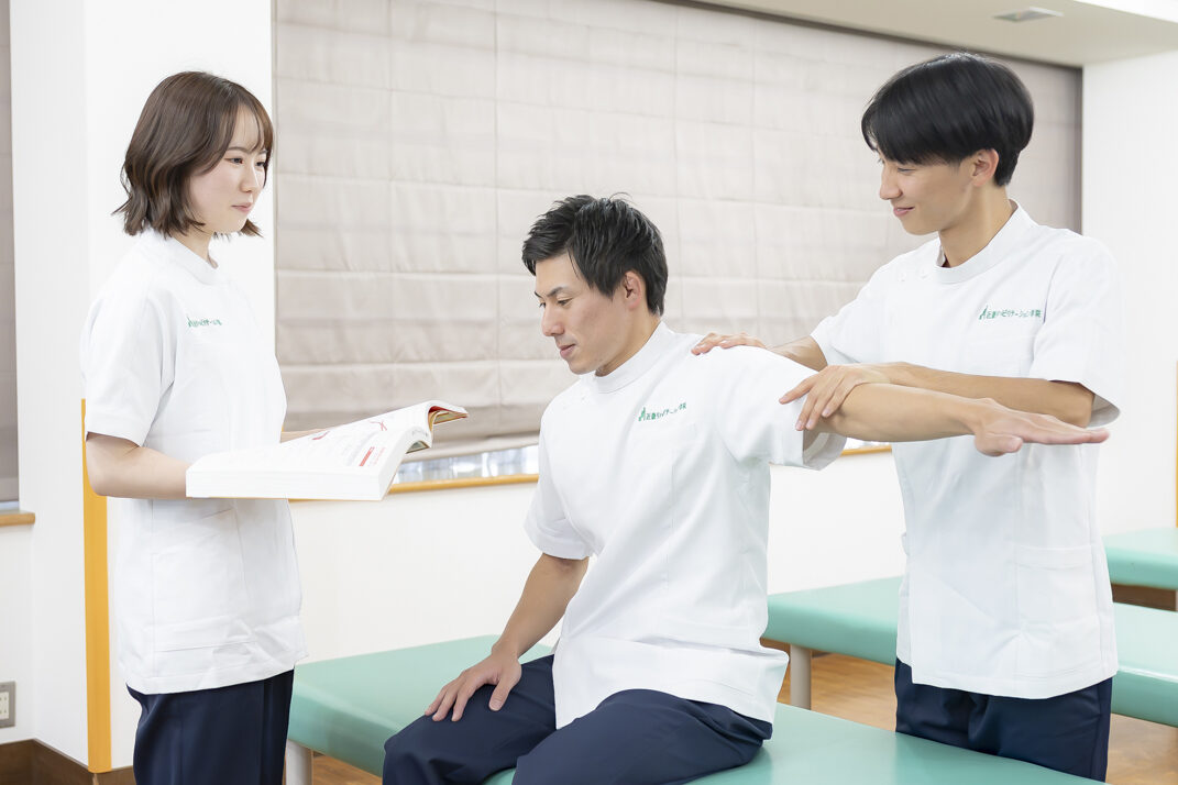 1年生では運動学や生理学などの理学療法の基礎の勉強をします。実習などを通して理学療法士という職業の大まかなイメージをつかみましょう。
