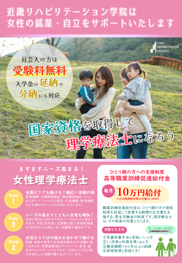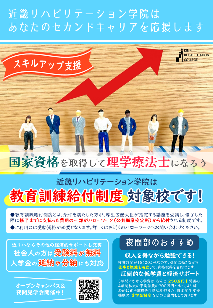 近畿リハビリテーション学院は、お仕事をしながら「理学療法士」国家資格取得ができる最適な専門学校です。