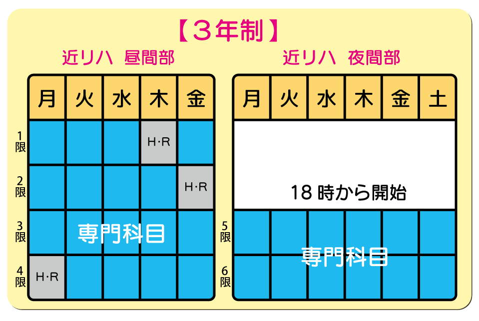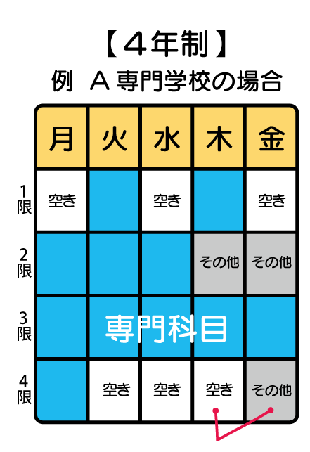 時間割で比較する3年制専門学校と4年制専門学校