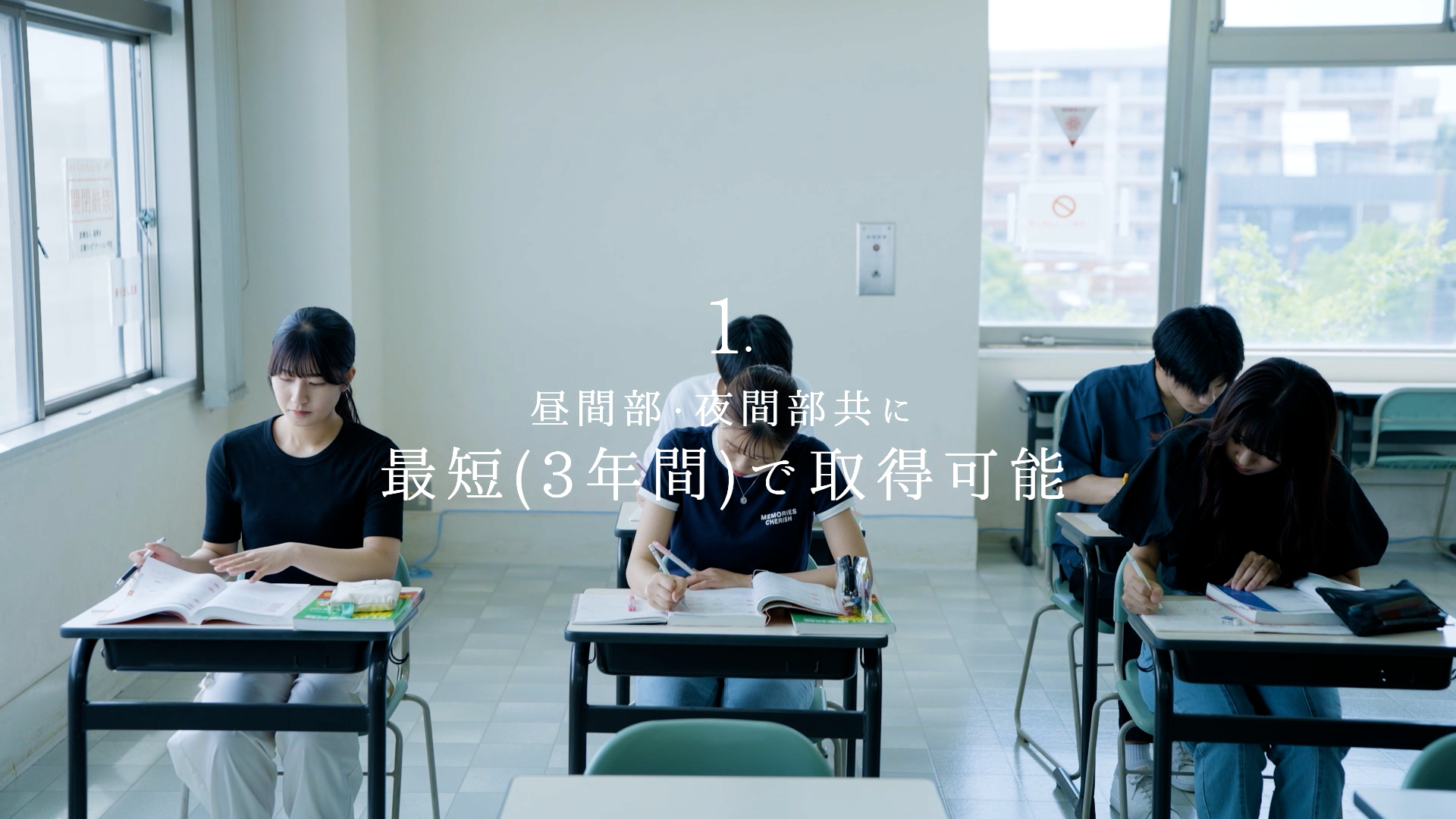 3年間という短期間で資格取得は、4年制の学校より1年早く働けるメリットがあります。
