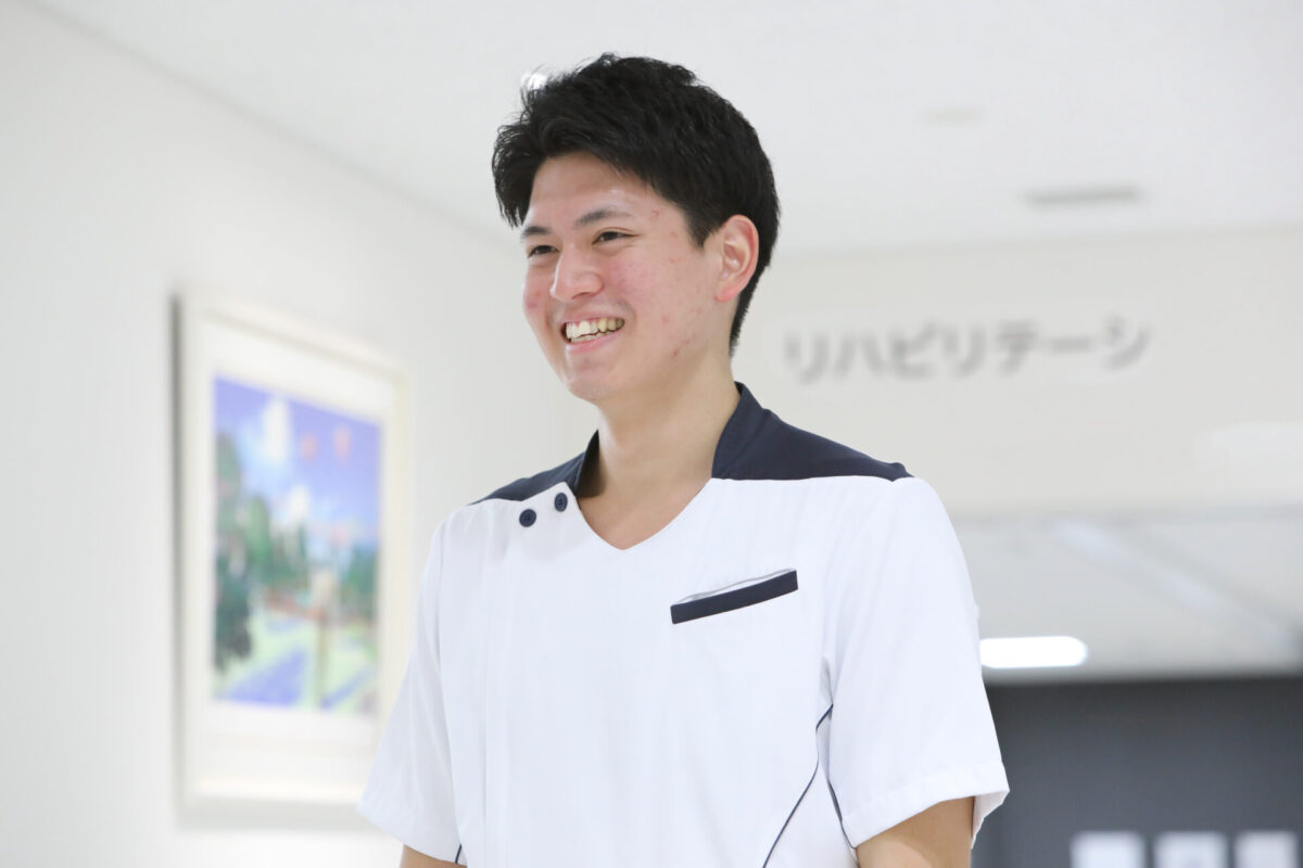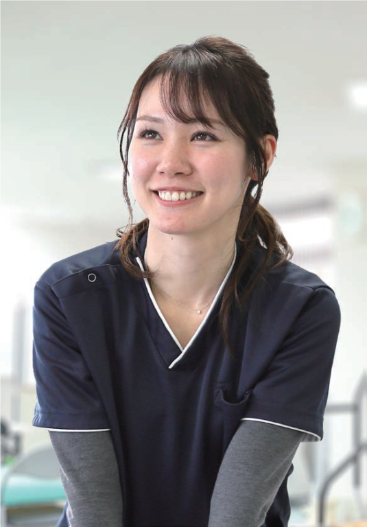 高校までバスケ部。卒業後、専門学校でスポーツトレーナーの資格を取得しましたが、治療した患者様のリハビリまで向き合いたいと思い、近畿リハビリテーション学院へ入学。パーソナルトレーナーなどの仕事をしながらの通学だったので、夜間であり、3 年という短い期間、手頃な授業料が決め手でした。知識や技術も丁寧に教えてもらえましたが、面接や試験などの就職対策も親身にサポートしてくれたおかげで、希望していた整形外科の仕事に就けました。仕事のやりがいは、自分の知識と経験で患者様が回復したとき。やはり、患者様が喜ぶ姿を見るのは嬉しいですね。学校では「コミュニケーション力」を身に付けることも大切。先生や同級生との交流を楽しみながら学んで欲しいです。
