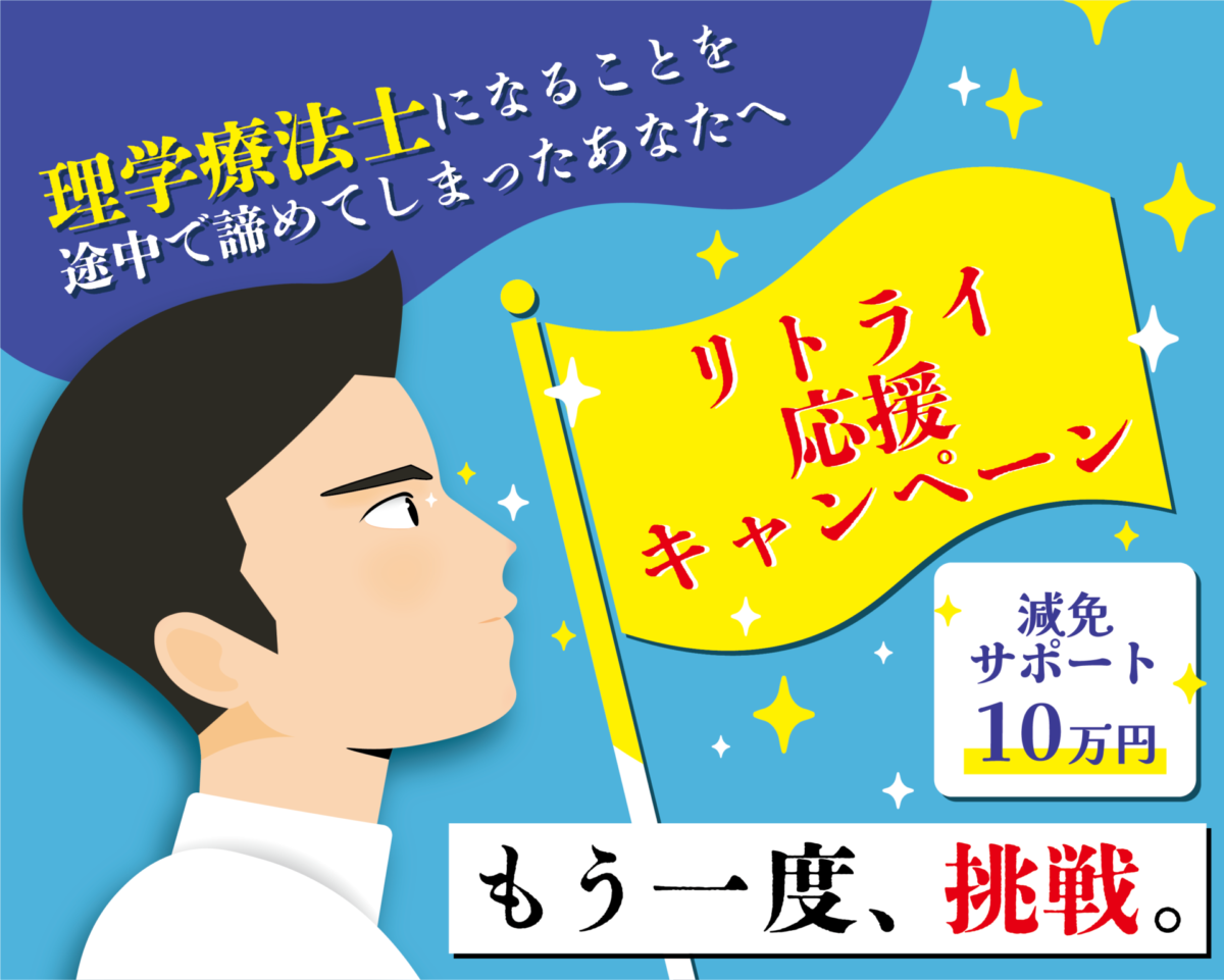 過去に理学療法士の(専門学校・大学)へ入学したが、何らかの理由で休学・退学をされた方。近畿リハビリテーション学院で、もう一度理学療法士を目指しませんか?また柔道整復師・鍼灸師・介護福祉士・看護師などの国家資格をお持ちの方もダブルライセンスをお考えの方も本校はサポートします(一律10万円減免)。未修得単位の取得のみで理学療法士になることができます。一度ご相談を下さい(※各保証制度およびキャンペーンの併用不可)